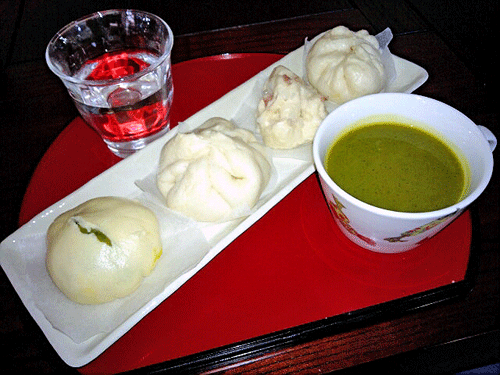 左からかぼちゃまん、肉まん、生ハムの花巻、大葉ささみまん。
